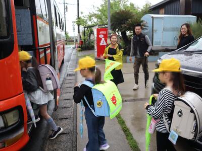 バスの運転手、保護者の皆様、地域の方々、警察官など多くの人に見守られて子供が安全に登校できていると実感しました。いつも感謝しています。ありがとうございました。
