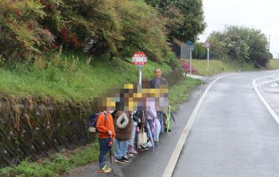 バス停には、多くの保護者の方や地域の方が見守りをされていました。おかげで、安全にバスを待ち、乗り込むことができました。