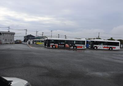 まずは、中ノ瀬車庫。ていねいに車の点検をされて出発されました。道幅が狭いところもありましたが、安全第一で運転されていました。