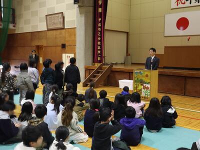 その後に校長から春休みは「お世話になった人に感謝の言葉を伝えよう」「次の学年に上がる準備をしよう」という話をしました。