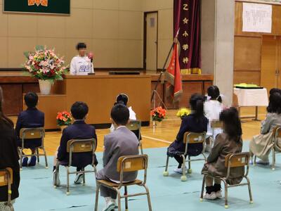 新入生は、入学式では胸をはって入場して、元気に返事をしていました。乙女小学校の自慢は、1年生から6年生まで仲が良いことです。今年も全校児童で楽しい活動をいっぱい行います。