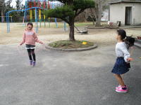 昨日から急に冬らしい気候になり、子どもたちの服装も、ジャンパーが1枚加えられたようです。それでも、業間になると子どもたちは運動場に飛び出しています。サッカー、縄跳び、長縄跳びなど、声を上げながら遊んでいました。半袖になっていた子どもに「寒くないね?」と尋ねると、「寒くありません!暑いですよ。」と返事が返ってきました。やっぱり子どもは風の子です。