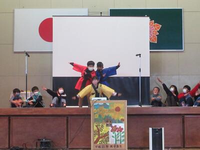 ステージと観覧席の間は大きく距離をとり、午前中は全校児童の前で、午後は各学年が入れ替わりながら保護者の前で発表することで、感染症拡大防止に努めました。発表内容や方法もいろいろな制限があった中、どの学年の子供たちも本当によく頑張りました。