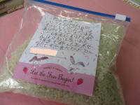 5年生が、収穫したお米とメッセージを持ってきてくれました。