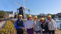 ハウステンボスでの班行動。園内のたくさんの花の中いろいろなアトラクションを楽しみました。