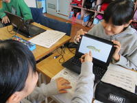 2年生の国語「漢字の広場」で、漢字の定着をしようと今まで学習した漢字を使った算数の問題を作っていました。このように他の教科の学習内容と関連づけて学習することを「教科横断的な学び」といいます。来年度から完全実施される新学習指導要領でも示されていることの一つです。時間割では、国語の時間、算数の時間…と分かれていますが、国語で学んだことも算数で学んだことも、子どもたちの頭の中には一緒にとどまっています。