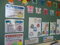 さて、保健室前には、「寒さに負けない工夫をしよう」という掲示が貼り出されました。そのポイントは3つあるのだそうですが、何だと思いますか?