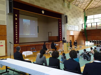 今日(3月30日)は、この3月で乙女小を転出することになった職員の退任式を行いました。今年度は7人の先生とお別れすることになり、転出者にとっても、留任者にとっても、そして、子供たちにとっても辛い別れとなりました。先生たちとの別れを惜しみ、号泣する子供もいました。