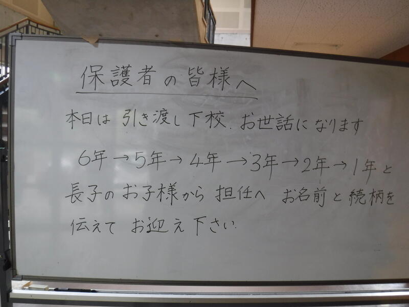 「緊急引き渡し下校」! お世話になりました