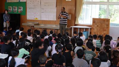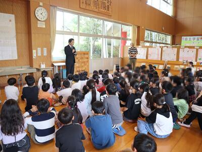 2校時は1~2年生で、道路の歩き方や横断歩道の渡り方について学びました。