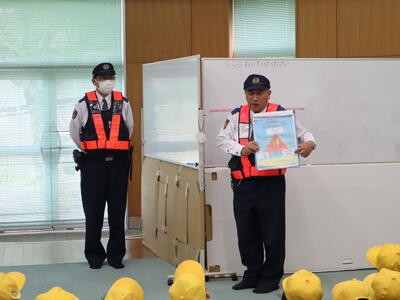 4月18日(金)に御船警察署と白旗駐在所から警察官を招いて、「交通安全教室」を開催しました。
