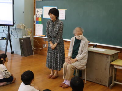 5月23日(金)にケアハウス桜の丘から2名の方が来られて、1年生に「鉛筆立て」を贈呈していただきました。