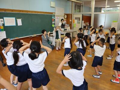 この「鉛筆立て」をいただいた後、お礼に1年生がダンスのプレゼントをしました。