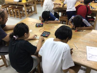 5年生は、入浴と夕飯をすませて、夜の創作活動をはじめました。