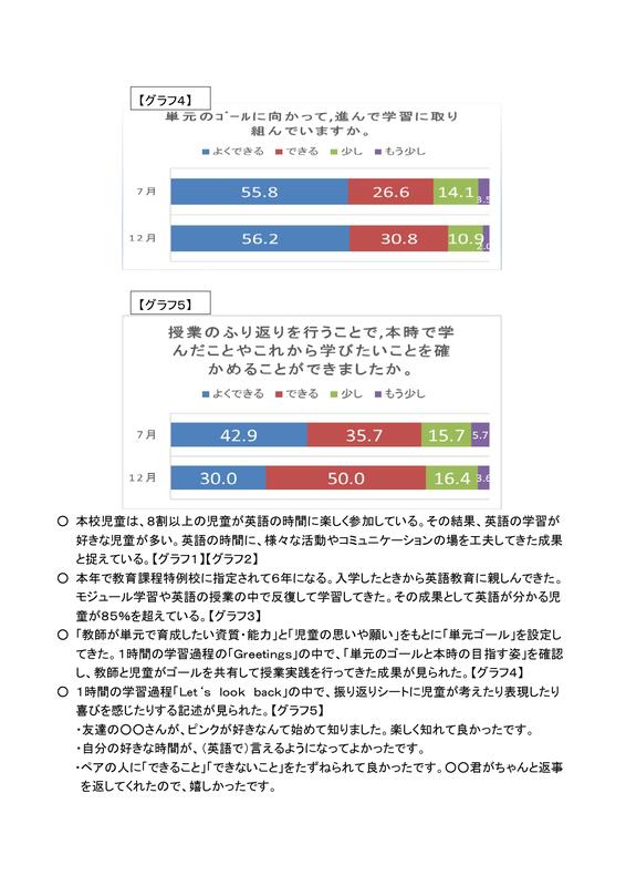 令和3年度の教育課程特例校の取組を、「児童による評価」「教師による評価」「学校評議員による評価」「御船中学校区『学力向上』研究発表会参加者による評価」の4点からまとめてみました。