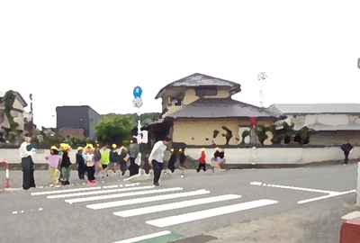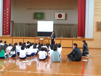 今日は、正しい交通ルールと、安全な歩行の仕方について練習したり、ビデオで学んだりしました。2年生は、ぎりぎり持ちこたえた曇り空のなか、正門前の横断歩道の渡り方を練習しました。その他は、雨が降ってしまい教室や体育館での学習となりました。