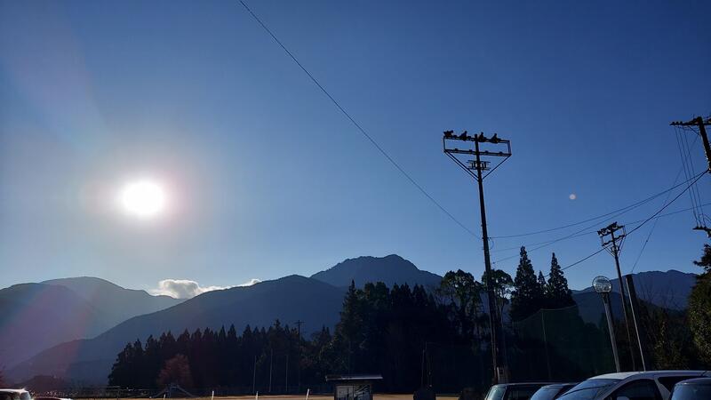 今週の月曜日、朝、励徳小から見える山に雪がうっすら積もっているのが見えました。
