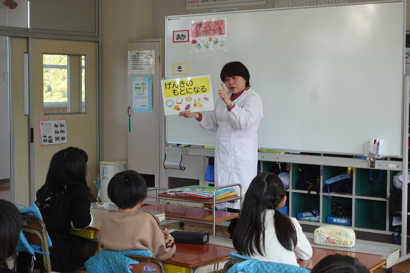 5時間目は、低学年でした。赤・黄・緑それぞれの働きについて紙芝居等を交えながら授業をしていただきました。