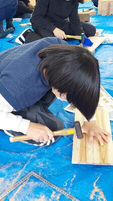 のこぎりはなかなかうまく使えなかった女の子が、金槌の使い方はとても上手だったと林務課の方が教えてくださいました。