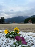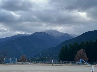 今週の月曜日、朝、励徳小から見える山に雪がうっすら積もっているのが見えました。