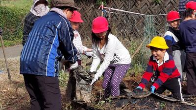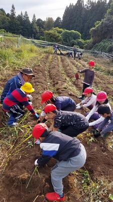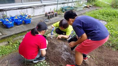 昨日の朝、校内を歩いていると、畑で何やら教頭先生が泥だらけになって作業をしています。