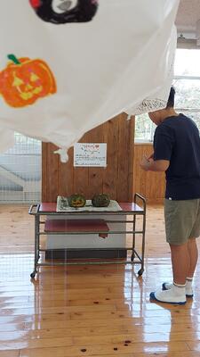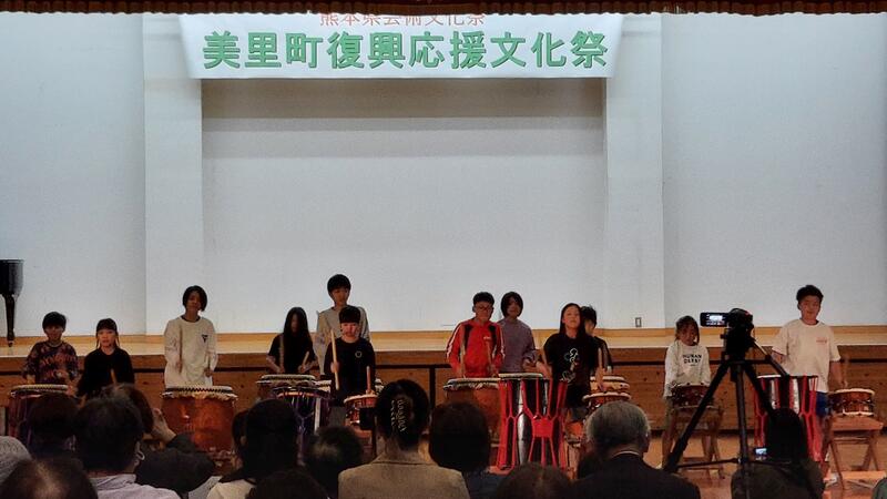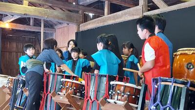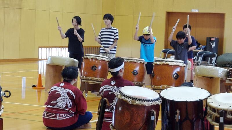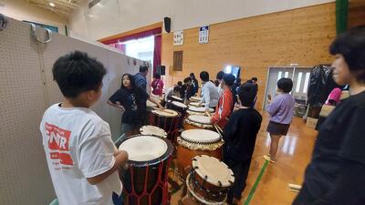 使う太鼓は、地域の方の手作り太鼓だったり、職員がタイヤにテープを巻いて作ったタイヤ太鼓だったり、美里町所有の太鼓を地域ボランティアの方に運搬をお願いして使わせてもらったり・・・駆使しています。