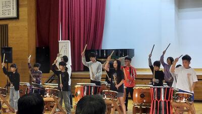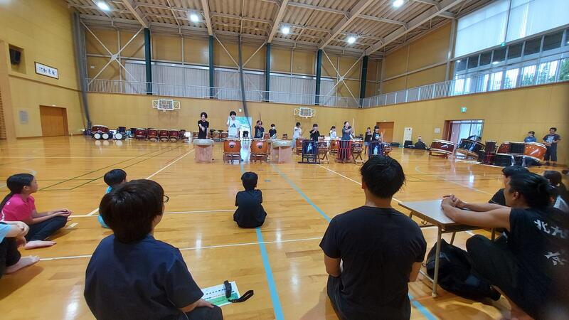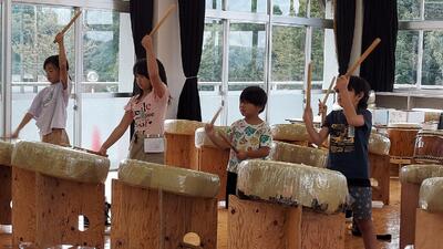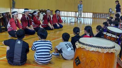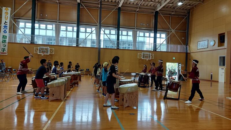 プロの演奏者から直接指導を受け、2時間弱の時間でしたが、みんな目をキラキラさせながら懸命にバチを握り太鼓を打ち鳴らしました。励徳小の体育館から緑川ダムを越え周りの山々へ響き渡らんばかりの太鼓の音にここが励徳小であることを忘れてしまいそうでした。