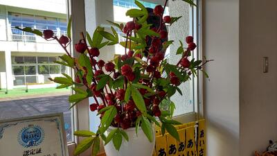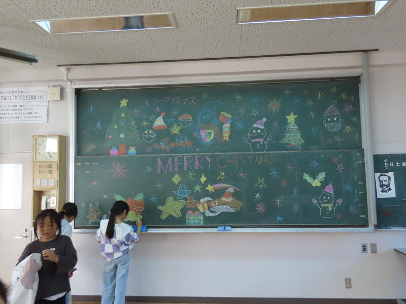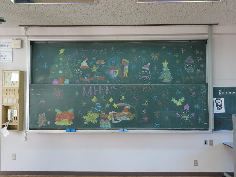 そんな中、職員玄関、図書室、校長室前にはクリスマスの飾りがささやかですがありました。