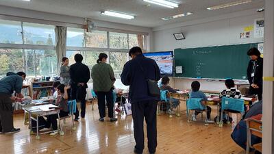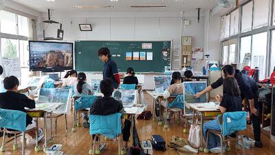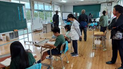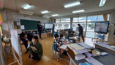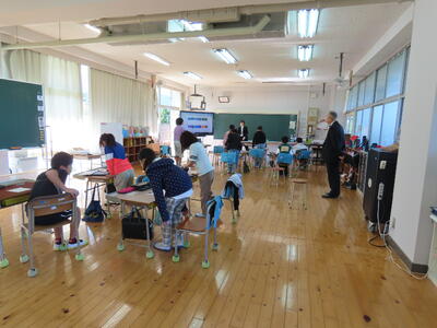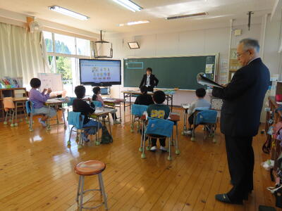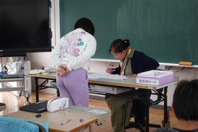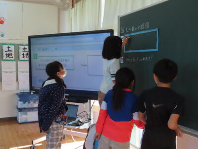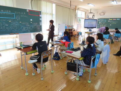 複式ですので、先生は一人(学習支援員の先生がサポートには入りますが)で2学年の授業を進めます。