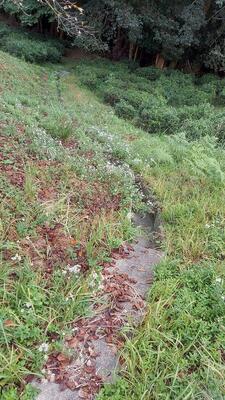 いい具合に水が土を少しずつ削りながら細い川を作り山すそには扇状地ができつつありました。