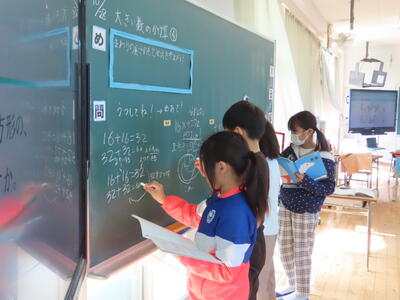 今年から完全複式となったので2年生は、今年初めての複式の授業ではありますが、担任の指導もあって少しずつではありますが、学習リーダーを中心に自分たちで進めることができつつあります。
