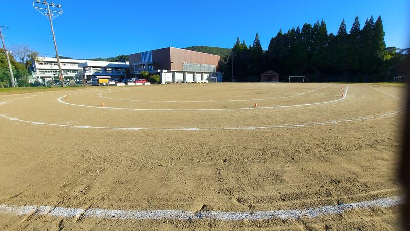 今日は、3時間目に持久走の練習で運動場を子どもたちが走るということだったので、その前に運動場の落ち葉掃きを兼ねて見回りました。