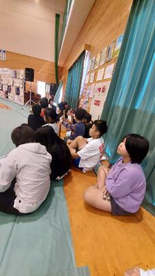 低学年は、まだ太鼓の練習には参加していませんが、上学年が練習している音が漏れ聞こえてくる環境の中にいますので、自分も3年生になったら・・・という思いを持つ子どもたちです。