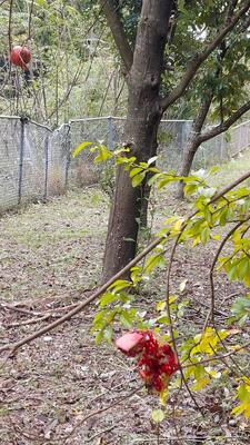 子どもたちは帰った後だったようですが、親子とみられる猿4頭が、運動場で追いかけっこをしたり木に登って木の幹を揺らしたり。ひとしきり遊んで森の中に消えていったようです。