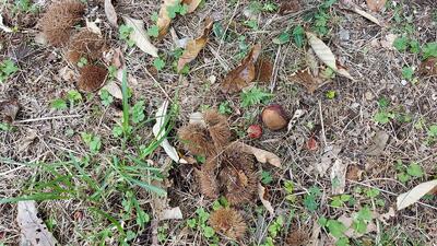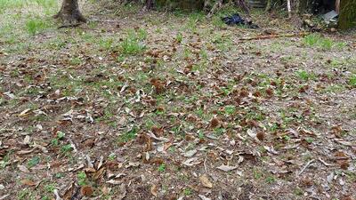 1か月以上前に芝刈り機で芝を刈りましたが、もうさすがに成長は遅く、しばらく芝刈りはしなくてもよさそうです。その代わりと言わんばかりの落ち葉です。
