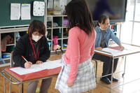 鑑賞会が終わった後は、3年生以上の子どもたちに紬衣の皆さんからご指導していただきました。