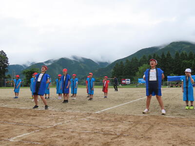 予定の開始時間より20分ほど遅れで運動場で開会式を行うことができました。