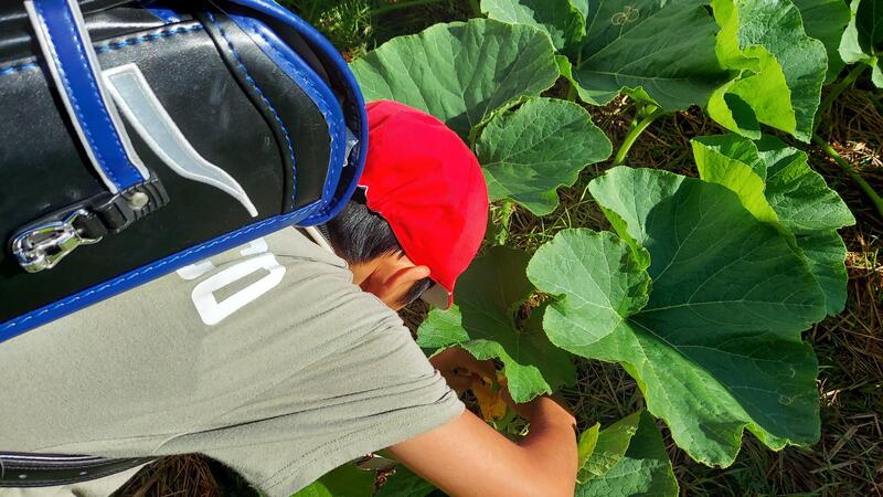 よくお世話を頑張ったなと感心し見ていると、男の子がかぼちゃの花を一つとって花びらをむしっているではありませんか。思わず、