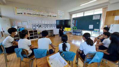 5校時、3.4年生教室をのぞいてみますと総合的な学習の時間でした。