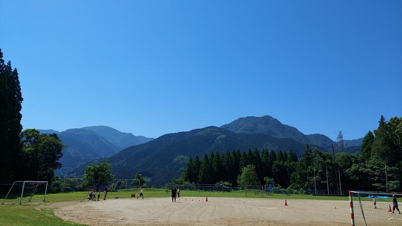 この大自然の中、広々とした運動場で伸び伸びとスポーツテストに挑戦した子どもたちです。