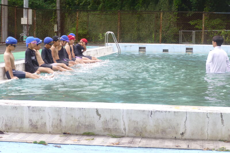 1・2年生の授業2時間目は、良い天気だったのですが、3年生以上が行う3時間目から雨が降りはじめ、しまいには美里町に雷注意報まで出てしまいました。なので、残念ながら上級生は5分だけ浮く練習のみの授業となりました。