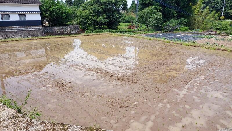 最初は冷たかった田んぼの水が植え終わるころにはお風呂ぐらいになっていました。