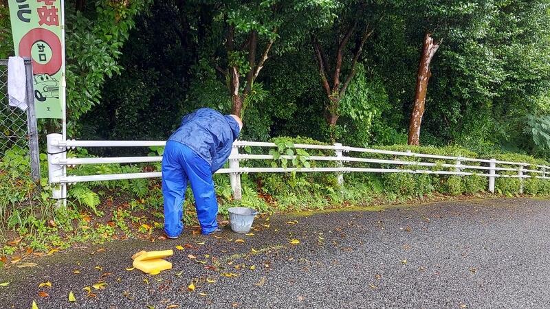 そんな中、いつも子どもたちの登下校でお世話になっている第一タクシーのながつさんがあいさつ坂のガードレールをきれいにしてくださいました。