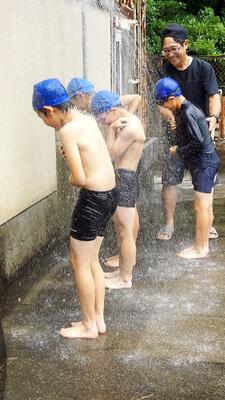 ベテラン教師の分かりやすい指導のもと、今年初めの水泳の授業とは思えないほど自然に水に慣れ、気持ちよく泳ぐことができ一安心です。