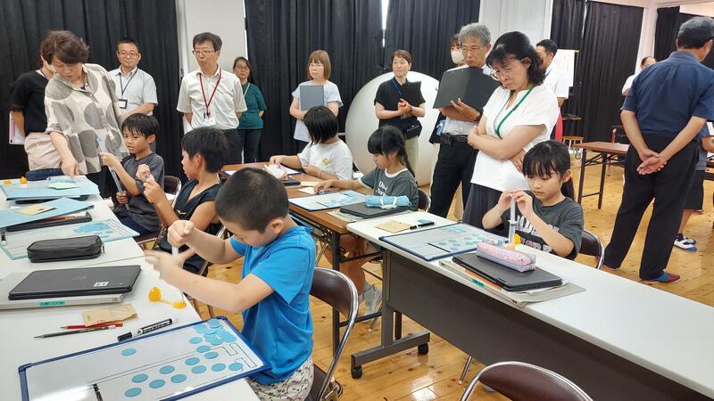 担任のまわりに8人の子どもたちが集まり考える様子は、ほほえましくもあり、子どもたちの自由な発言への担任の見事な切り返しに訪問の皆様も微笑みながら参観されていました。