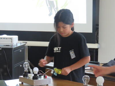 子どもたちは、思い思いの実験道具を操作したり友達の考えと自分の考えを「比較」したりながら自分なりの考えを表現していきました。