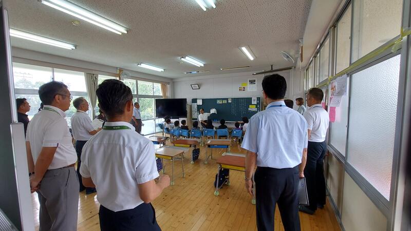 美里町教育長様、教育委員の皆様、教育委員会の皆様、美里町内の校長先生の皆様、総勢12人の皆様の訪問でした。校長先生方の中には、励徳小に初めていらっしゃる先生もいらっしゃって、余裕を持って早めに到着されました。