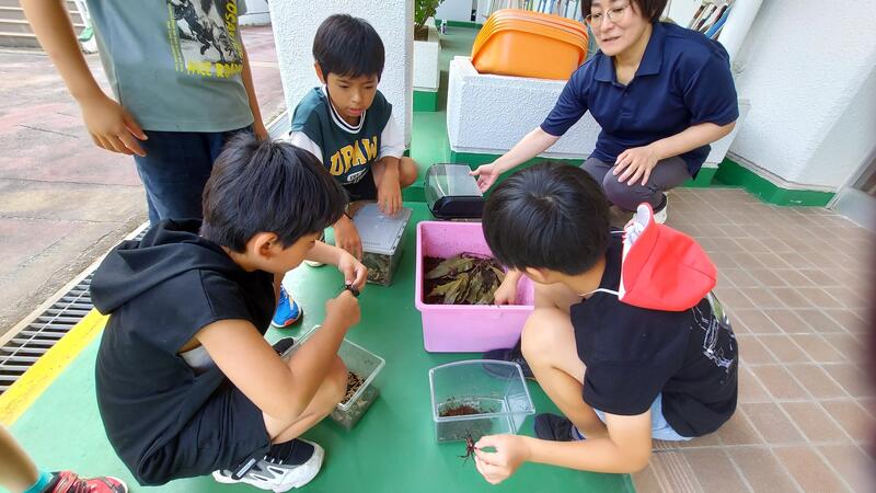 いくら励徳小が自然豊かな中にあるとは言っても、飛んできたわけではなく、美里町にお住いの一村様が育てていらっしゃるカブトムシの一部を持ってきていただきました。