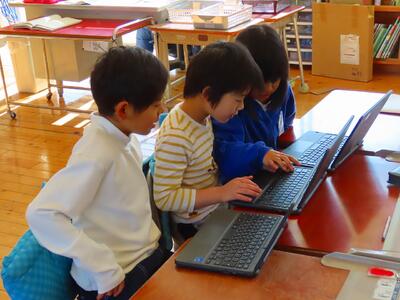 10日(水) 「プログラミング教室」 5・6年生は、本日から3日間講師の方に来ていただいて、プログラミング教室を行っています。6年生は、昨年度も受けており、早い説明にもかかわらずプログラミングソフトを自在に操っています。5年生もサポートしていただきながら画像を動かすプログラムに挑戦していました。
