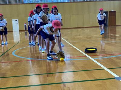 31日(水) 「グローブ体験」 低学年の体育の時間に、メジャーリーガの大谷翔平選手からいただいたグローブを使って、ゴロを取る体験をしました。少しずつグローブに慣れて、キャッチボールができるようになればと思います。(一人一人の写真は「ギャラリー」にアップしていきます。)